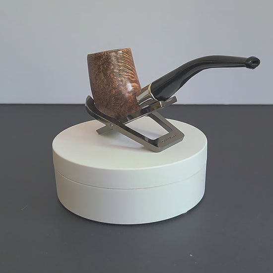 Briar bent billiard with acrylic stem and decorative cap on shank.