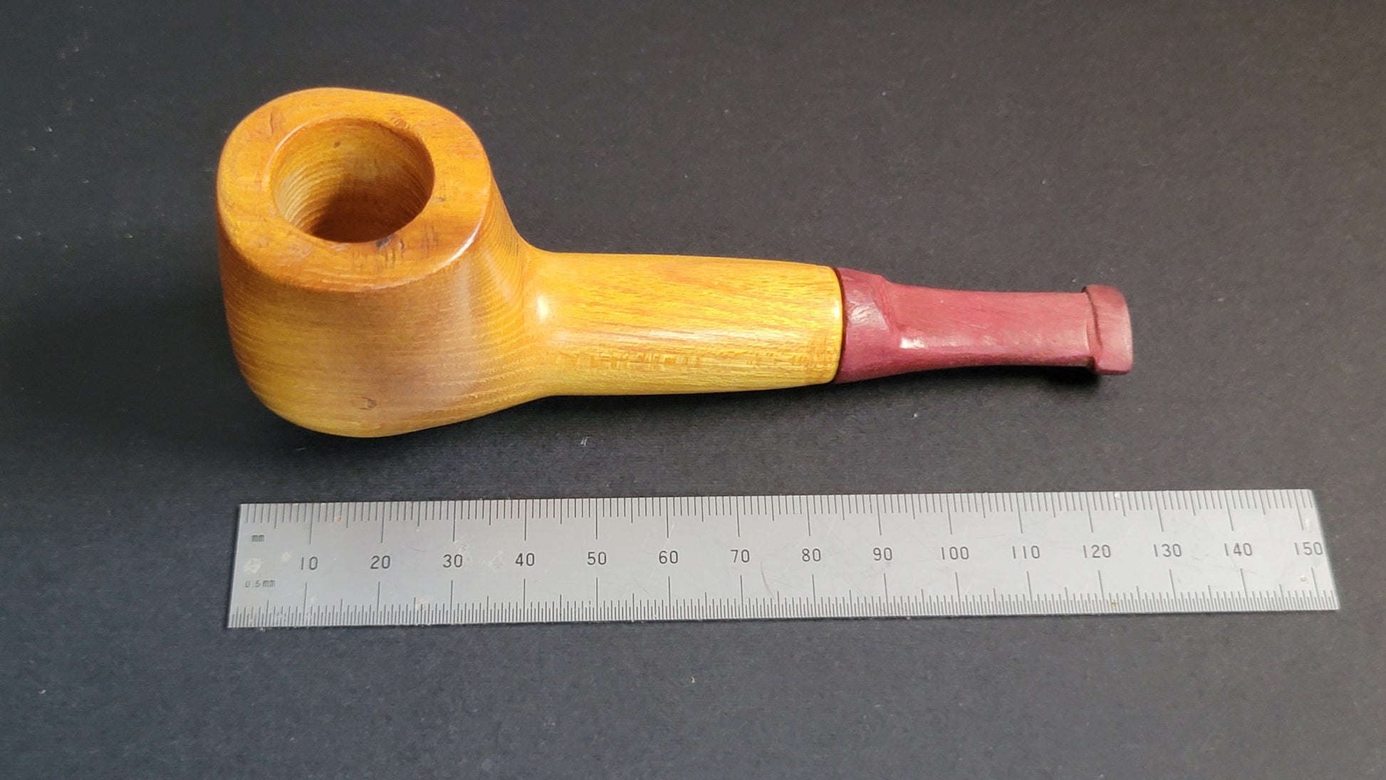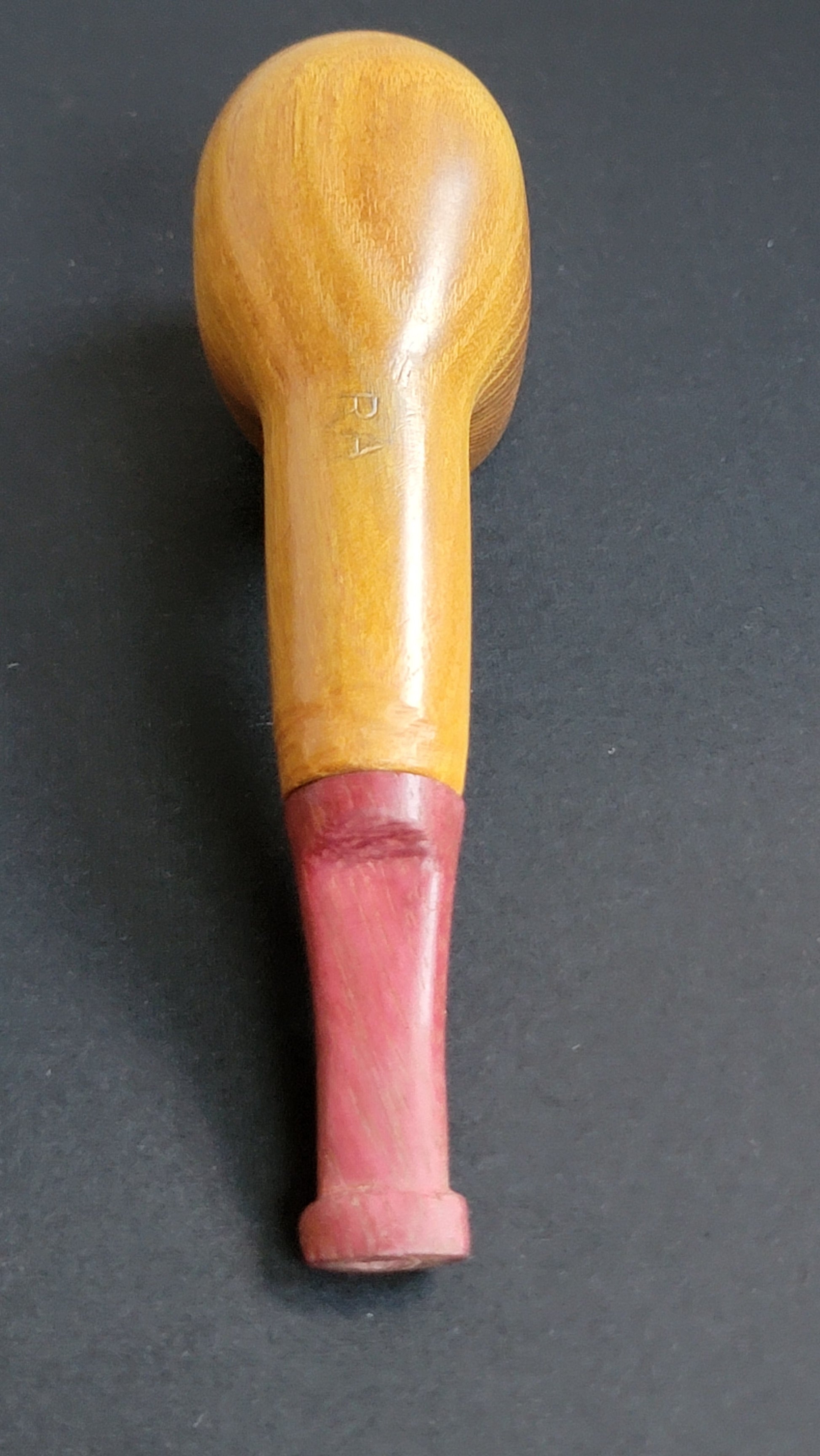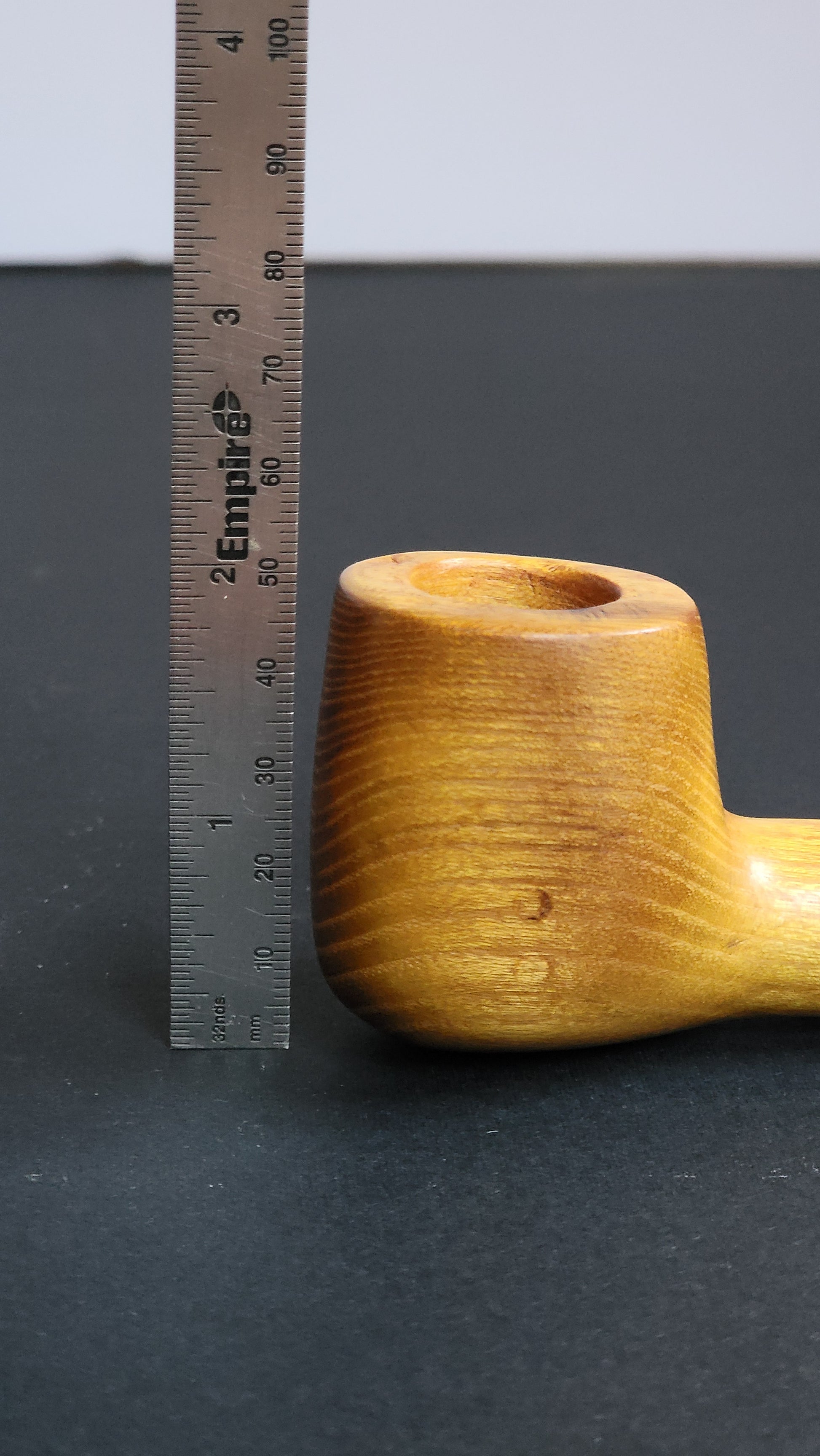 One of the first pipes made with a rather large mortise requiring me to make my own stem. I decided to use purpleheart wood blank and its a little clunky but its a nice small every day carry pipe. I took photos showing the measurements of the pipe with the ruler shown.